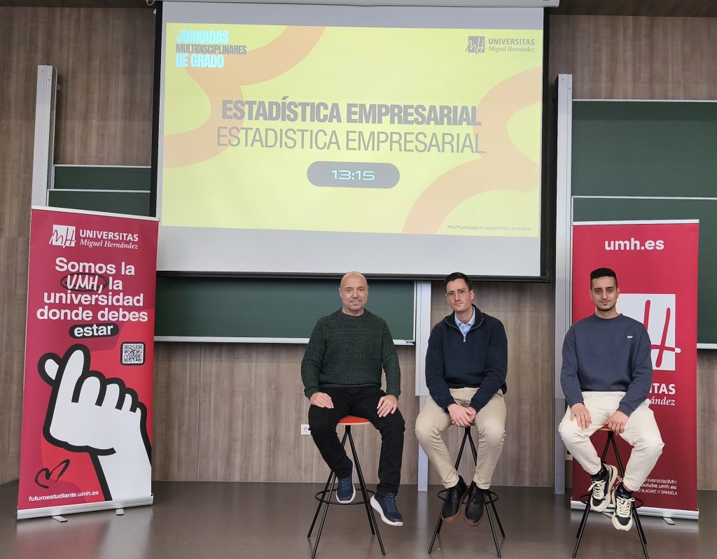 El Grado en Estadística Empresarial estuvo presente en las II Jornadas Multidisciplinares de la UMH, un encuentro dirigido a orientar al alumnado preuniversitario en la elección de su itinerario académico y profesional. La jornada contó con la participación de numerosos ponentes que presentaron la amplia oferta de grados y dobles grados de la Universidad Miguel Hernández.